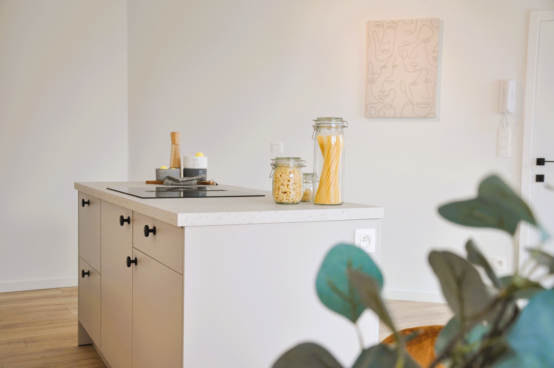 Met een bewoonbare oppervlakte van 72 m² beschikt het appartement over een ruime en doordachte indeling. De inkomhal geeft toegang tot een apart toilet en een praktische wasberging. De leefruimte is bijzonder lichtrijk en vormt samen met de open keuken het hart van de woning. De keuken is volledig uitgerust en afgewerkt met hoogwaardige materialen en een centraal eiland, ideaal voor wie graag kookt en tegelijk verbonden wil blijven met de leefruimte.